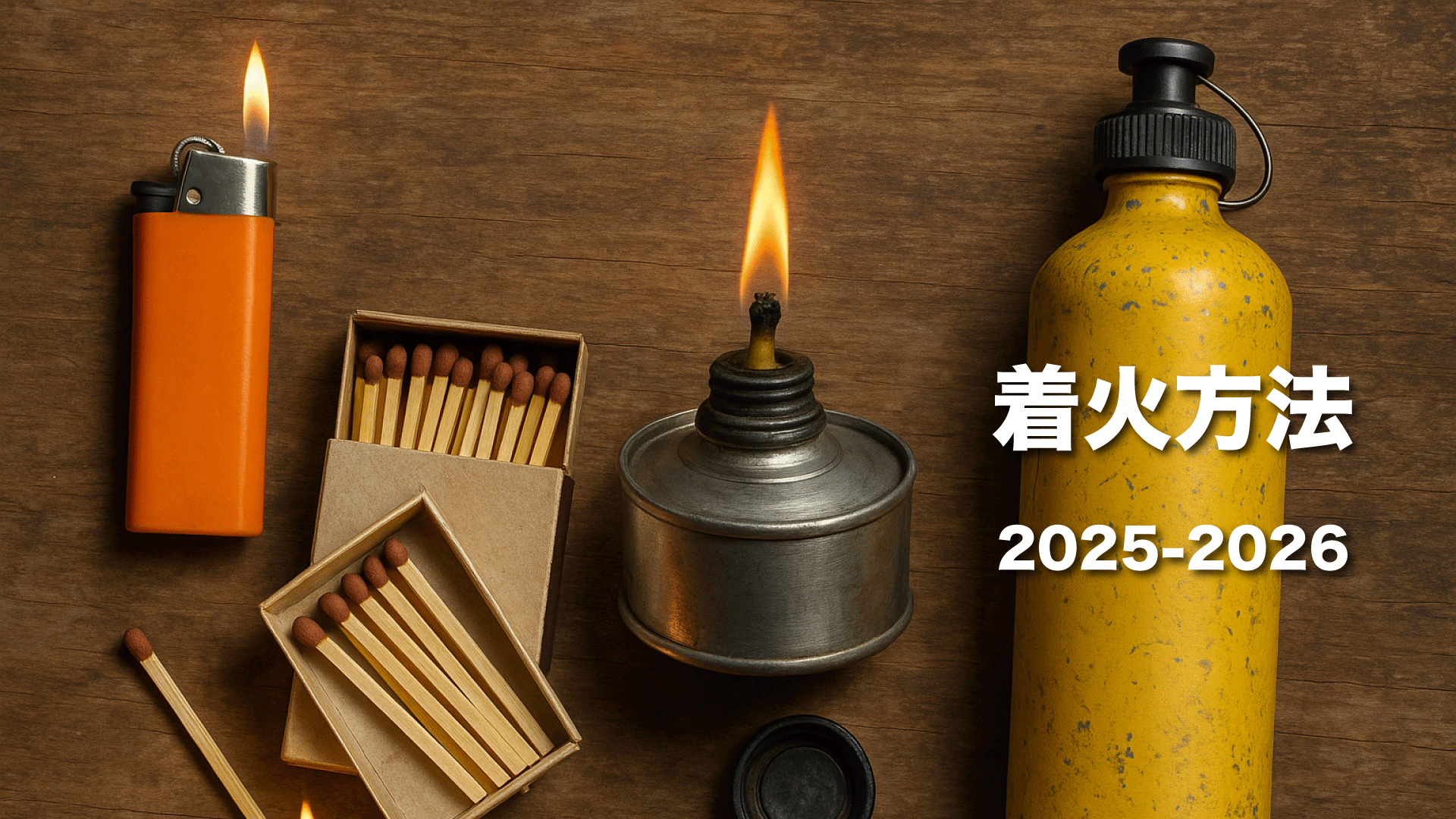ライター(ガス・オイル・電子)からマッチ・火打ち石、さらにガス缶(CB缶・OD缶)まで、燃料・点火方式・使用可能気温を調べてみました。